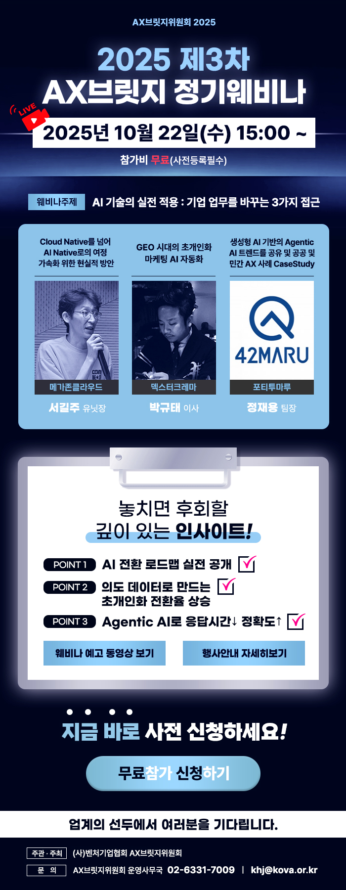 [사전등록] 2025 제3차 AX브릿지웨비나 : 10/22(수) 15:00 온라인 생중계