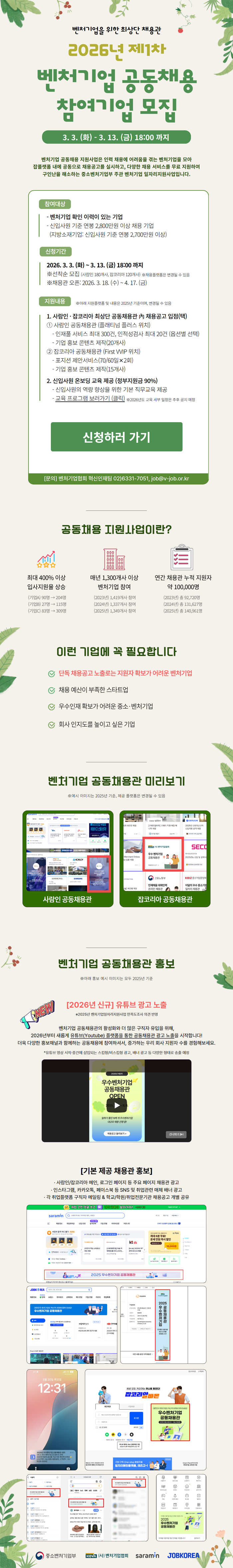 2026년 1차 벤처기업 공동채용 참여기업 모집